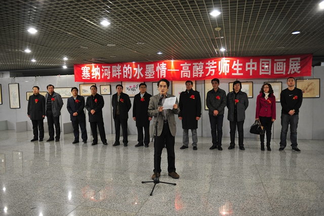 美术与艺术学院院长、市美术家协会副主席马振庆在开幕式上致辞,对高醇芳师生中国画展在sunbet申搏美术馆举行表示热烈地祝贺,对承办此次展览感到非常荣幸,向为此次展览成功举办的校内外领导和专家表示衷心的感谢,向参加开幕式的领导、嘉宾和各界朋友表示热烈地欢迎。他向现场人员概要介绍了高醇芳女士丰富的人生阅历、独特的艺术风格和为中法文化交流所做出的重要贡献,并向高醇芳女士致以崇高的敬意,预祝展览取得圆满成功!