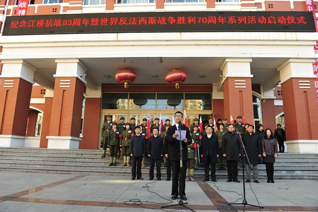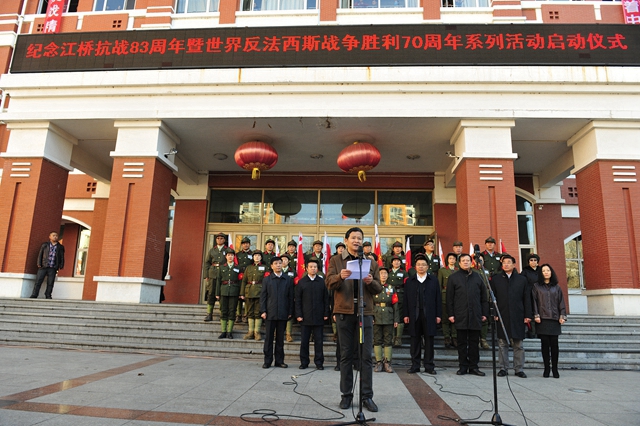 2014年11月4日,是江桥抗战83周年纪念日。上午9:45,sunbet申搏官方网站主题为“铭记历史、警示未来”“纪念江桥抗战83周年暨世界反法西斯战争胜利70周年系列活动启动仪式”在中区广场隆重举行,标志着sunbet申搏2015年将历时一年的纪念世界反法西斯战争胜利70周年系列纪念活动全面启动。