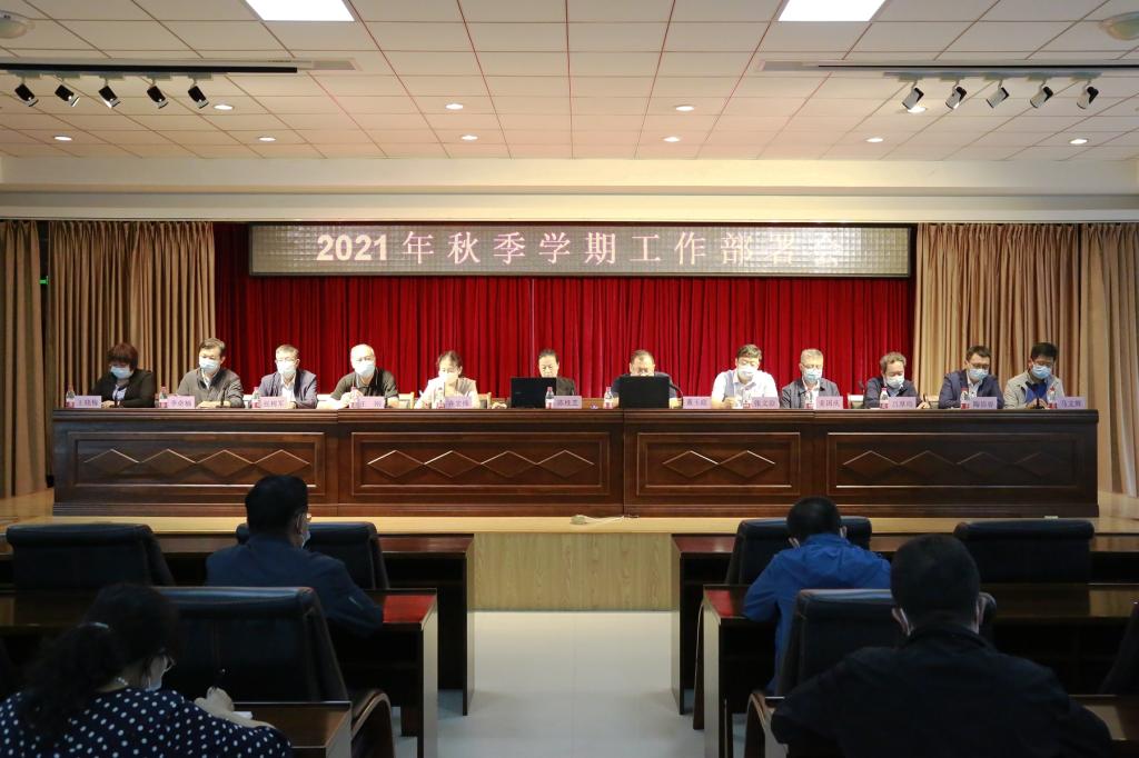 校长董玉庭在讲话中对学校2021年上半年的工作成绩进行了梳理,代表学校对党员干部和师生员工为学校疫情防控工作和教育教学事业发展付出的艰辛努力表示感谢。为确保全年重点工作落实,为学校“十四五”时期事业高质量发展打好基础。董玉庭结合学校春季学期及暑期工作实际,从十个方面对秋季学期的重点工作进行了部署:一、慎终如始抓好疫情防控;二、深入推进党史学习教育;三、充分做好新学期教学工作;四、用心做好大学生教育管理工作;五、全面加强科研、学科和研究生教育工作;六、扎实推进“人才强校”战略;七、大力深化新时代教育评价改革;八、系统推进大学治理能力和治理体系现代化建设;九、全面启动建校70周年校庆筹备工作;十、坚持和加强新时代学校党的建设。
