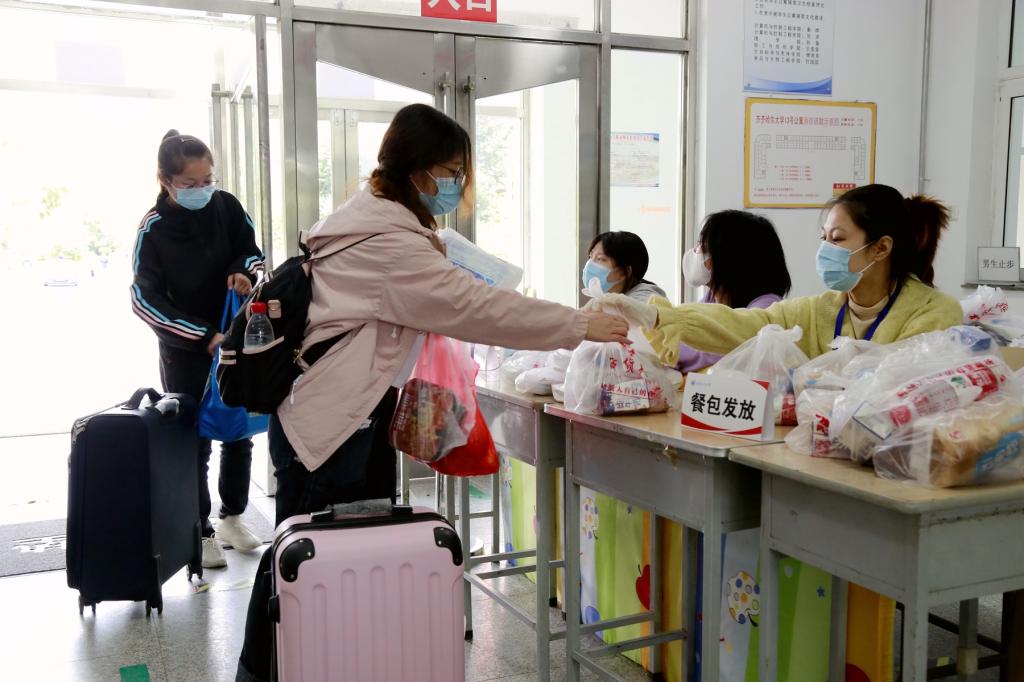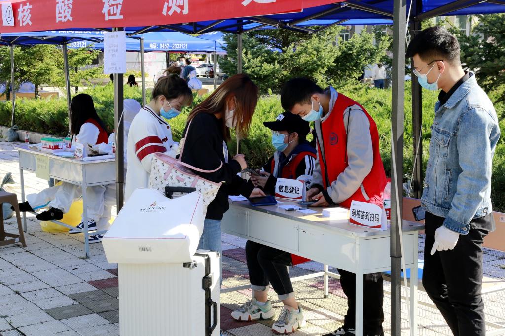 秩序井然,返校有“爱”。9月11日早六点左右,学生工作部(处)、保卫处、后勤管理处、校医务所等各部门的工作人员们就已经准备就绪,等待着首批返校学生的归来。查验龙江健康码、“完美校园”返校码,对学生携带的行李进行全面消毒,完成红外线测温,进行核酸检测,核对与检测无误后进入校园返回宿舍……各部门工作人员分工协作、密切配合,认真实施“一查二消三测四核五通过”举措,返校现场有条不紊、秩序井然。初秋的校园,乍暖还寒,面对低温天气,学生工作部(处)积极应对,准备了爱心餐包等物资,更与其他部门通力合作,第一时间解决了返校现场反馈的问题和返校学生的需求,保证每名返校学生暖心入校,用细致贴心的关爱,让前来送行的家长放心,更让欣然归来的学生安心。