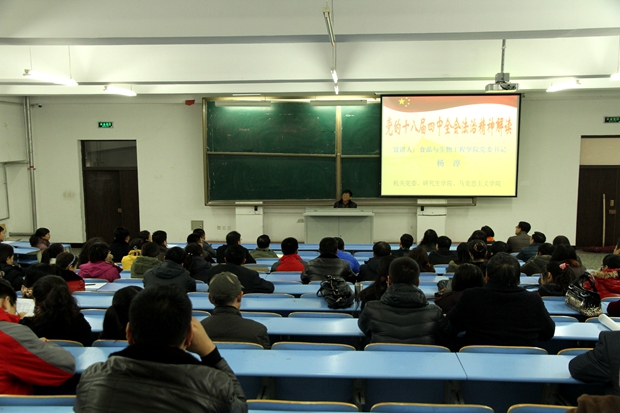 学习好、宣传好、贯彻好全会精神,是当前和今后一个时期全校的首要政治任务。连日来,按照学校《学习宣传党的十八届四中全会精神近期安排》,全校各级党组织高度重视,迅速行动起来,组织开展了形式多样、生动活泼的学习宣传贯彻活动。在各基层党委(直属党支部)和宣讲团成员的共同努力下,11月26日,sunbet申搏党的十八届四中全会精神学习宣讲活动正式启动。
