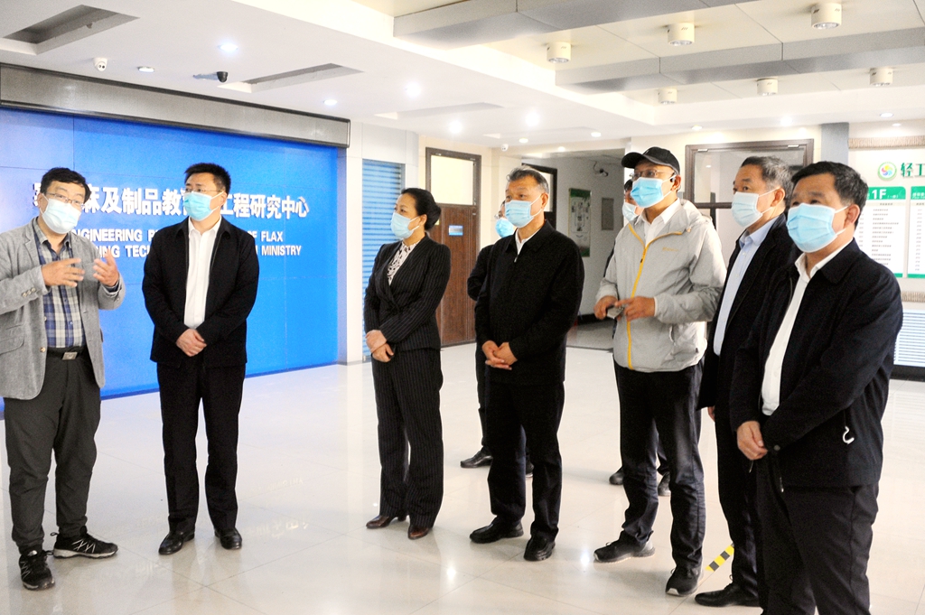齐齐哈尔市工业和信息化局局长杨飞舟,sunbet申搏科研处、寒区麻及制品教育部工程研究中心、工业大麻国家市场监管技术创新中心、省工业大麻加工技术创新中心、省农业微生物制剂产业化技术创新中心等单位负责人参加调研。