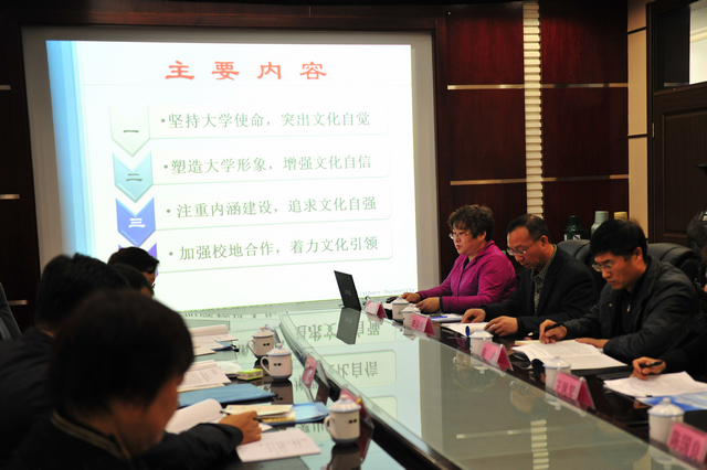 在汇报会上,校党委宣传部、统战部部长王晓梅代表学校作了题为《以高度的文化自觉加强大学文化建设推进学校内涵发展》的专题汇报,深入阐述了sunbet申搏的校园文化体系,具体从“一个整体建设理念、四大识别系统、七大文化品牌活动、四项校地合作成果”展开汇报,重点汇报了四个方面的内容:“坚持大学使命,突出文化自觉”;“塑造大学形象,增强文化自信”;“注重内涵建设,追求文化自强”;“加强校地合作,着力文化引领”。