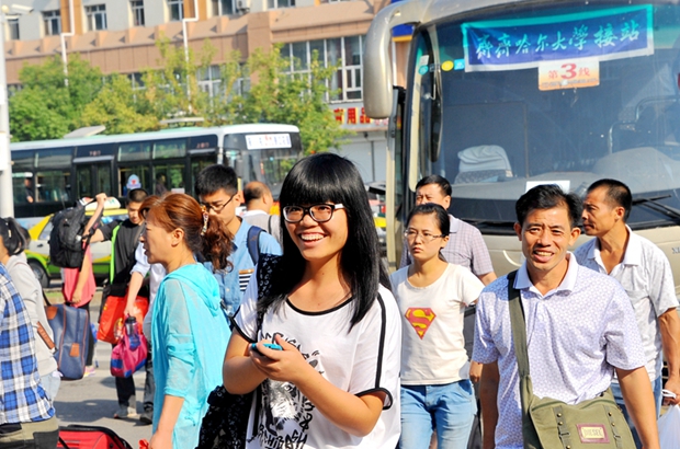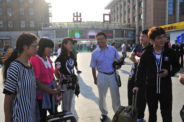 8月30日,从早晨6:00直至18:00,校党委书记李海红,校长马立群,纪委书记张学军,常务副校长郑喜群,副校长吕晓辉、李英杰,工会主席李敏义等校领导分别深入到火车站和东、中、西区迎新接待点、学生寝室看望入学报到的2014级新生及其家长,检查指导迎新工作,把关爱与温暖传达给刚刚入学报到的新生和家长。