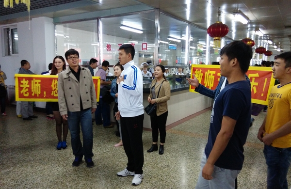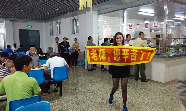 9月2号中午,齐大食堂人来人往,师生们正在买饭就餐。突然一阵歌声传来,一名男生唱起了“老师,我总是想起你”,随后又有几名学生陆续加入了演唱队伍。