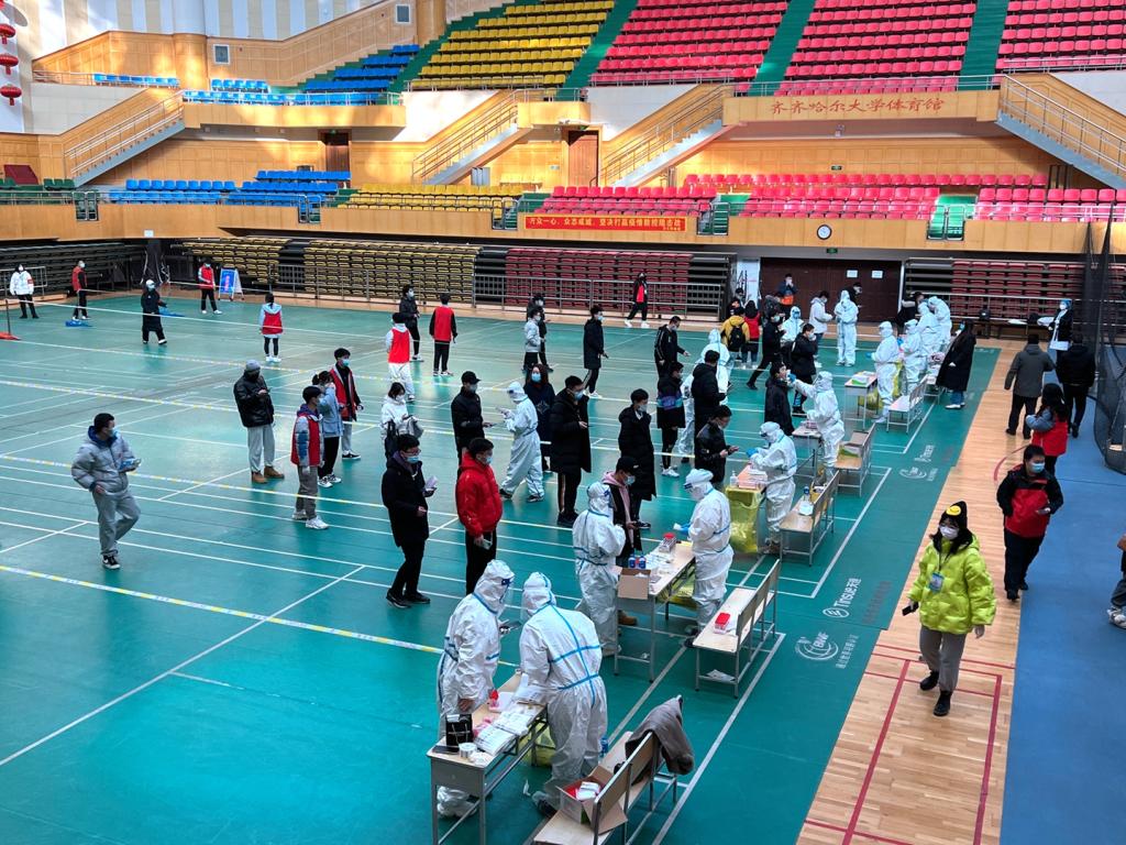 11月7日上午,校党委副书记张文治、副校长丛喜权在相关部门负责人陪同下,深入体育馆等地,仔细询问核酸检测的流程安排、人员安排、应急措施等情况,亲切慰问现场志愿者和工作人员,对各有关单位的积极配合、辛苦付出表示感谢,并强调学生全员核酸检测是学校筑牢安全防线的必要措施,相关部门和学院要充分认识到这项工作的重要性,在思想上时刻绷紧疫情防控这根弦,认真把控每个环节,确保高质量完成核酸检测采样工作。