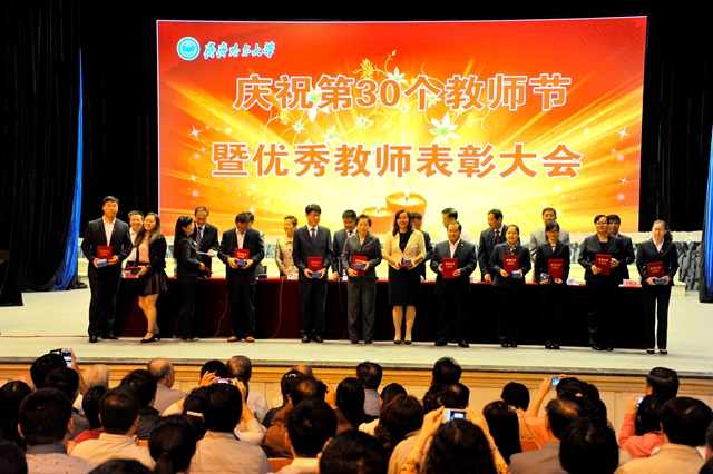 他说,很高兴和大家欢聚在这里,共同纪念第30个教师节!首先,我谨代表学校党政领导班子向各位老师和全校教职员工,向为学校建设与发展做出积极贡献的离退休老教师、老同志,致以节日的问候和崇高的敬意!