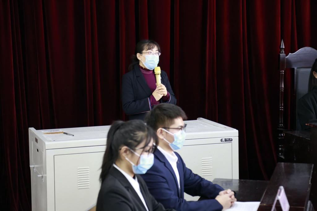 法学系主任李娜副教授对此次庭审过程进行了精彩点评。她充分肯定了同学们的表现,指出此次“模拟法庭”活动程序严谨,同学们分工合理,各司其职,表现得非常专业。大家经过庭审激辩,将庭审过程演绎得精彩纷呈。希望此次活动能够激发同学们学习法律的热情,在鲜活的案例中掌握法律知识,知法明理,健康成长,做知法、懂法、守法、用法、护法的社会主义公民。