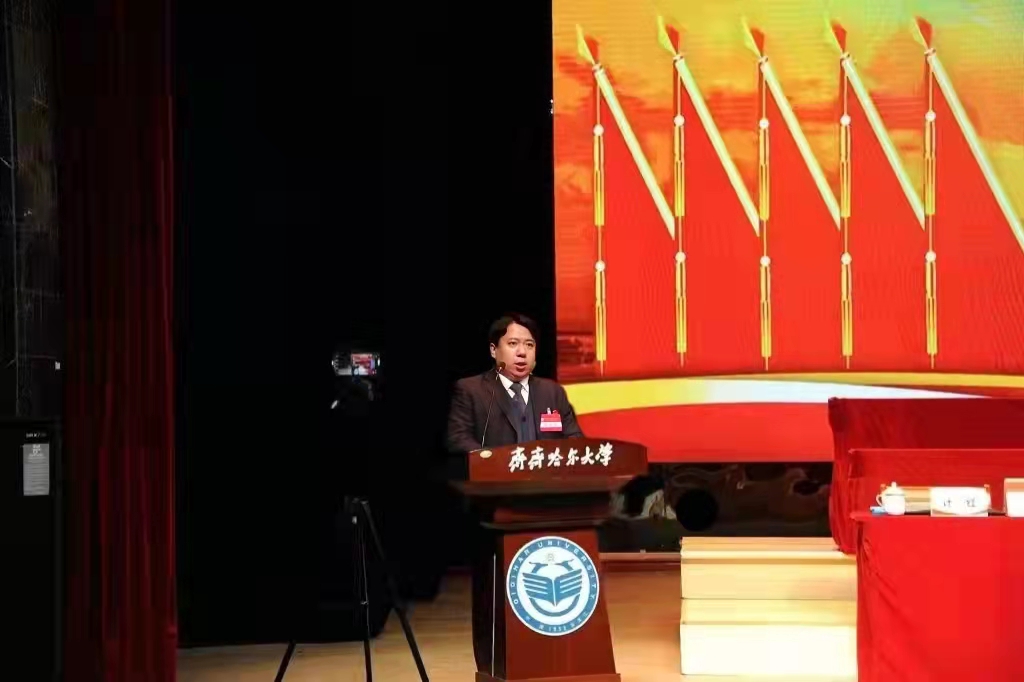 齐齐哈尔医学院学生会执行主席路彭代表兄弟高校致词