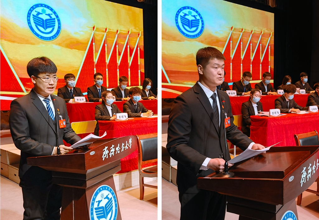 校学生会执行主席宋平代表第三届学生会委员会在大会第一次全体会议上作了题为《奋进新征程,建功新时代,团结引领全校青年学生在建设有特色高水平应用型综合大学征程中谱写青春华章》的工作报告;研究生会执行主席魏良作了题为《汲取党史精粹,投身科研创新,练就过硬本领,在助力学校有特色高水平应用型综合大学建设中发挥中坚力量》的工作报告。