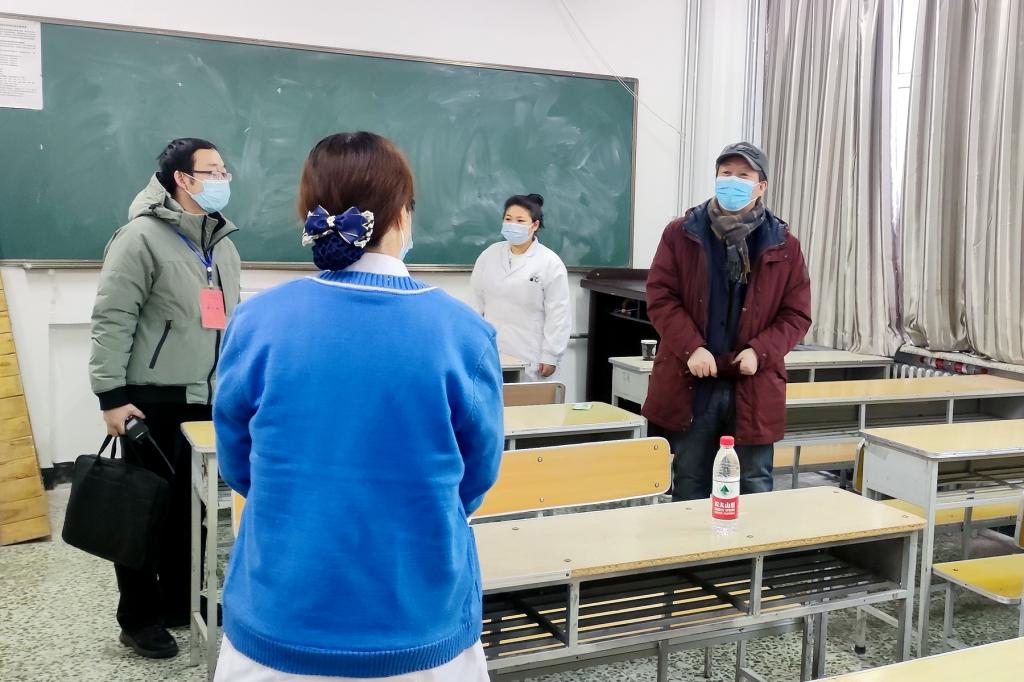 1月8日上午,副校长丛喜权、张树军在相关部门负责人陪同下,深入考点对面试组考防疫工作进行了现场检查指导,并与相关单位派驻工作人员围绕考点工作进行了深入交流,代表学校向他们表示了慰问和感谢。