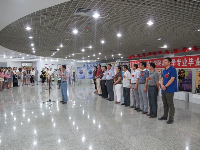 副校长李英杰宣布展览开幕。美术与艺术设计学院院长马振庆教授代表学院介绍了美术学专业的发展概况,对美术学系2014届学生毕业设计创作工作给予了肯定,对学生们圆满完成了毕业设计创作表示祝贺,并对毕业生同学提出了希望。美术学系郭锦龙副教授代表指导教师简要汇报了指导工作。美术学系2014届毕业生代表对学校的培养和关心表达了感谢之情。500余名师生参加了开幕式。开幕式由美术学系主任、学科带头人、硕士生导师何鑫教授主持。