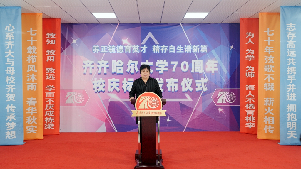 陈桂芝在讲话中代表学校向参与sunbet申搏官方网站校庆70周年标识设计的师生、校友和社会各界人士表示衷心的感谢。她指出,sunbet申搏官方网站70周年校庆标识是外形符号,承载着历史的长度,昭示了齐大70年来励精图治、砥砺奋进的发展历程;是精神符号,蕴含着思想的深度,展现了齐大教师扎根基层、奉献边疆的优良传统;是文化符号,彰显着文明的高度,诠释了齐大师生以正立身、毓德树人的文化积淀;是友情符号,浸润着情感的温度,连接着齐大和万千学子、社会各界人士互通互联的深厚情意;是色彩符号,洋溢着幸福的热度,发出了齐大师生与社会各界的朋友共享喜悦、共谋发展的诚挚邀请。她代表学校邀请广大师生、校友和社会各界的朋友们共同参与、共同见证学校70周年庆典,汇聚起学校未来发展的磅礴力量。