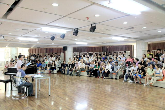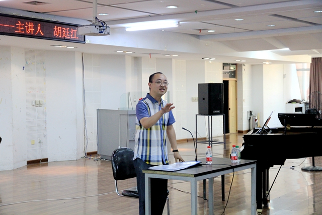 8日上午,中国音乐学院青年作曲家胡廷江在音乐与舞蹈学院四楼排练厅举行了题为《即兴伴奏的窍门以及我的声乐创作》的专题艺术讲座,并与现场聆听讲座的师生进行了互动、交流。讲座由音乐与舞蹈学院副院长殷进良主持,音乐与舞蹈学院党委书记蔡云凌、院长孙相根以及该学院专业教师、研究生、本科生等百余人聆听了讲座。讲座结束后,蔡云凌、孙相根等与胡廷江围绕声乐艺术创作和教学进行了交流和探讨。