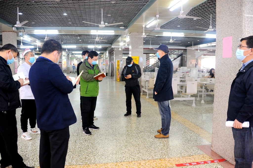 4月4日上午,副校长、党委常委、学校疫情防控工作领导小组常务副组长丛喜权带领学校疫情防控风险隐患排查工作组成员来到校园内疫情防控相关重点区域、重点场所实地进行疫情防控风险隐患巡查。
