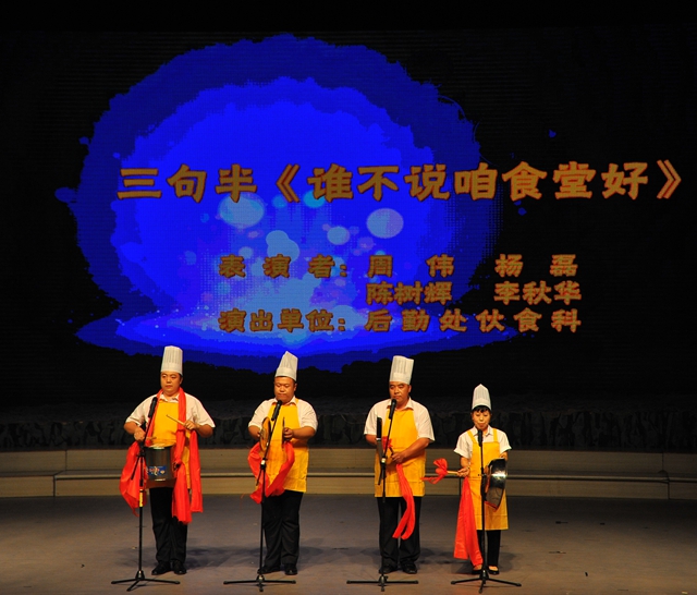 sunbet申搏官方网站后勤处庆祝中国共产党诞辰93周年文艺演出“多彩齐大梦•光荣后勤人”于6月27日晚在sunbet申搏东区“三致”文化广场隆重举行。演出的文艺节目全部由后勤处职工自编自导自演,节目主题突出、形式多样、喜闻乐见、特色鲜明、亮点频现,赢得了师生员工的广泛赞誉。应广大后勤职工和部分师生的要求,经学校工会批准,7月8日下午,后勤处“多彩齐大梦•光荣后勤人”专场文艺演出在文化宫再次精彩演绎。