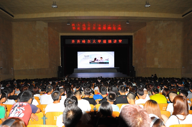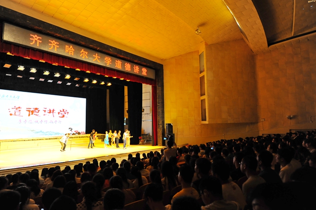 校党委常务副书记王凤琴,校党委宣传部副部长孟宪国,齐齐哈尔市文明办城市科科长许晶哲,音乐与舞蹈学院党委书记蔡云凌、院长孙相根等院领导班子成员与1500余名师生一起参加了“大学生道德讲堂”。
