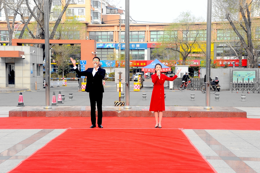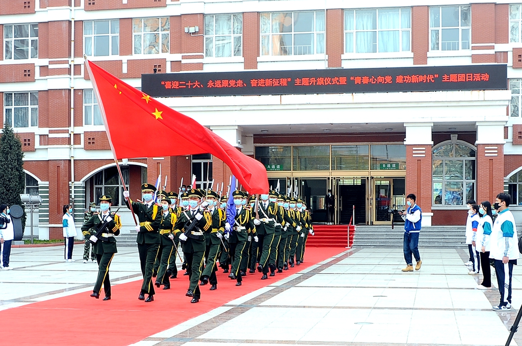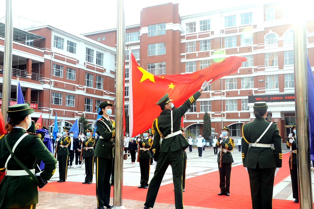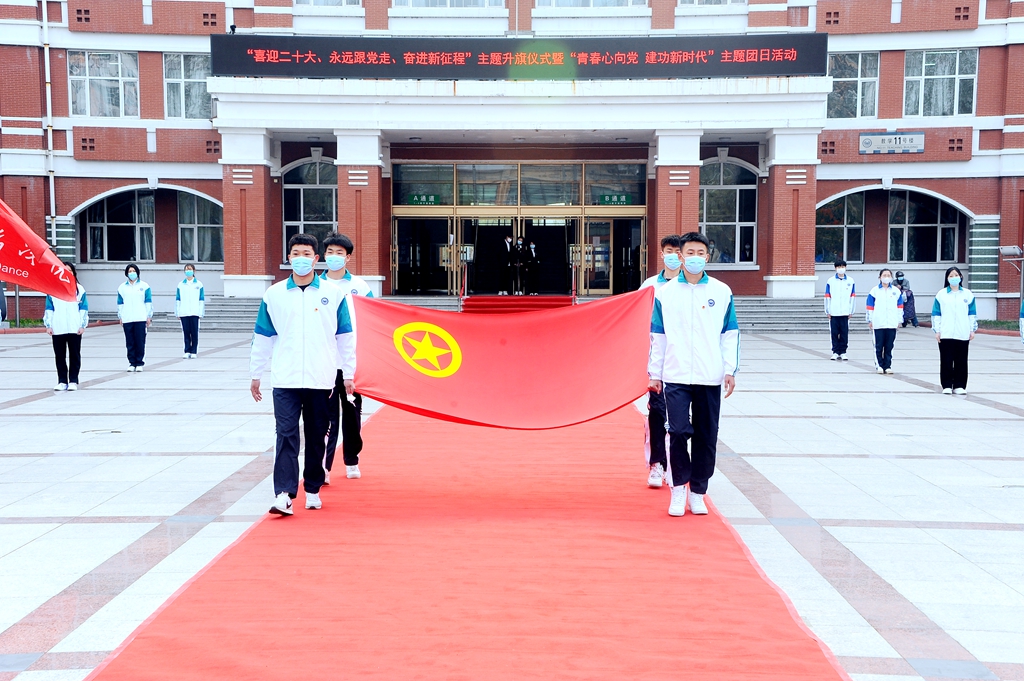 升旗仪式上,校青年学生党的创新理论宣讲团成员进行了国旗下演讲——“高举党的旗帜·礼赞建团百年·致敬奋斗荣光”。