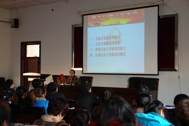校宣讲团成员、马克思主义学院副教授、硕士生导师吴庆华博士应邀为研究生学院、国际合作与交流学院、图书馆师生作了题为《建设生态文明 实现中华民族的永续发展》的宣讲报告,报告紧紧围绕党的十八届三中全会关于建设社会主义生态文明的新思路和新设想,分析了生态文明建设提出的历史背景和现实意义,重点分析了党的十八届三中全会如何明确提出改变现有的“唯GDP至上”的经济社会发展评价体系。