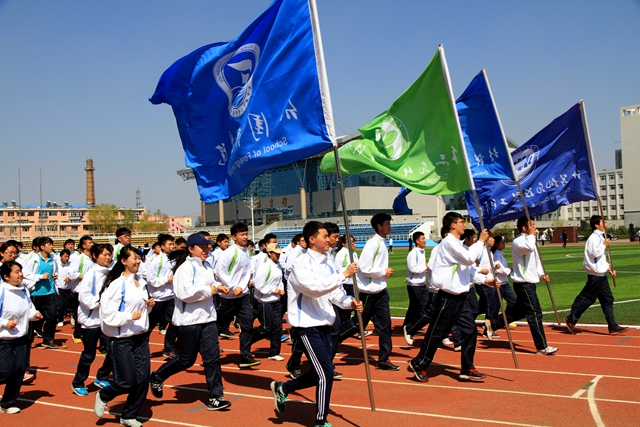 全体参加活动的学生在校党委副书记盖元臣“向着阳光,向着健康,向着美好未来出发!”的号召下,高举旗帜、口号响亮、步伐整齐地进行环场跑,揭开了“三走”活动新阶段的序幕。