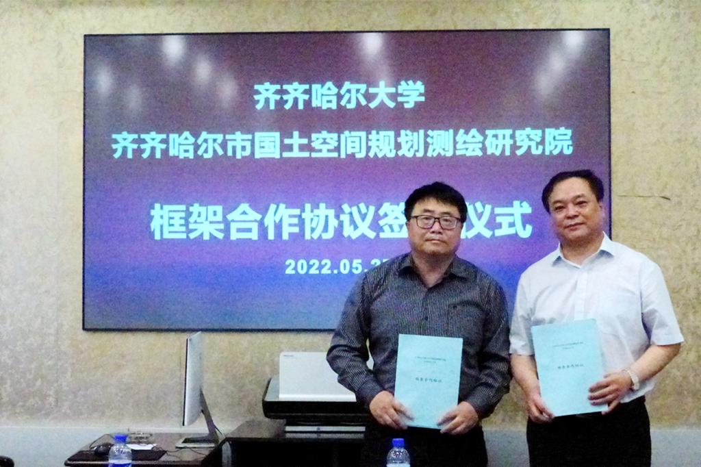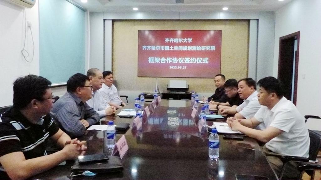 为推动人才培养供需对接,探索协同育人新模式,深化学校与地方科研院所合作交流,5月27日上午,sunbet申搏官方网站与市国土空间规划测绘研究院框架合作协议签约座谈会在市国土空间规划测绘研究院会议室举行。副校长王刚、齐齐哈尔市国土空间规划测绘研究院院长刘曦光出席会议,建筑与土木工程学院党委书记滕永富、院长张道明、党委副书记崔继贤、城乡规划系主任毕明岩;齐齐哈尔市国土空间规划测绘研究院副院长王利军、副院长石善福、副院长高晓东等参加会议,会议由刘曦光院长主持。