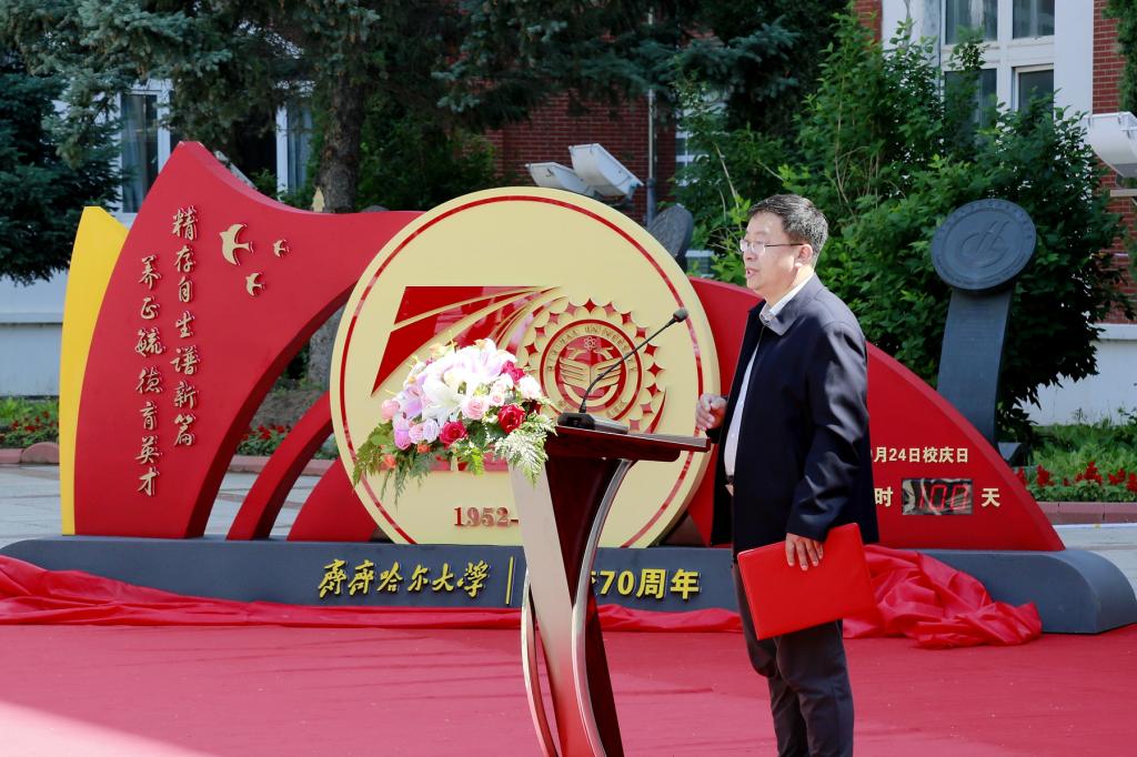 董玉庭校长在仪式上宣布sunbet申搏官方网站建校70周年专题网站上线,并宣读了《致海内外校友的一封信》。在信中,董玉庭代表母校向广大校友致以最亲切的问候,并诚邀广大校友在母校70周年华诞之际,相约嫩江之滨,重返劳动湖畔,一览环湖大学新貌,共谋未来发展新篇。