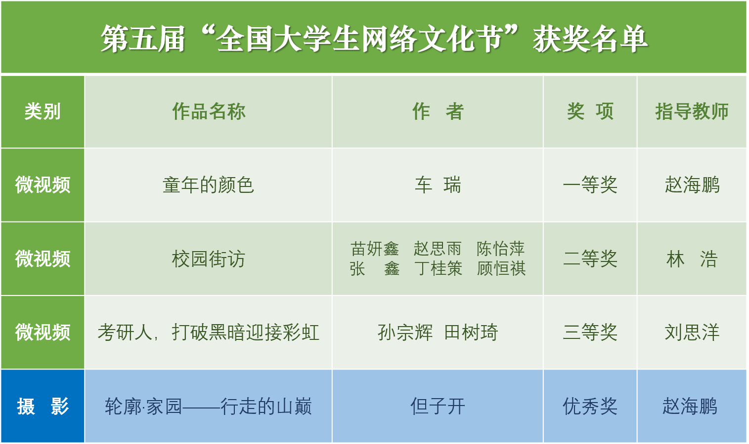 日前,教育部网站公布了第五届“全国大学生网络文化节”和“全国高校网络教育优秀作品推选展示活动”评选结果。sunbet申搏车瑞等9名学生的三项作品分别获得微视频类一等奖、二等奖、三等奖各一项,但子开获得摄影类优秀奖。学校荣获第五届大学生网络文化节优秀组织奖。本次获奖作品的等级和数量位居省内高校前列,创历史新高。