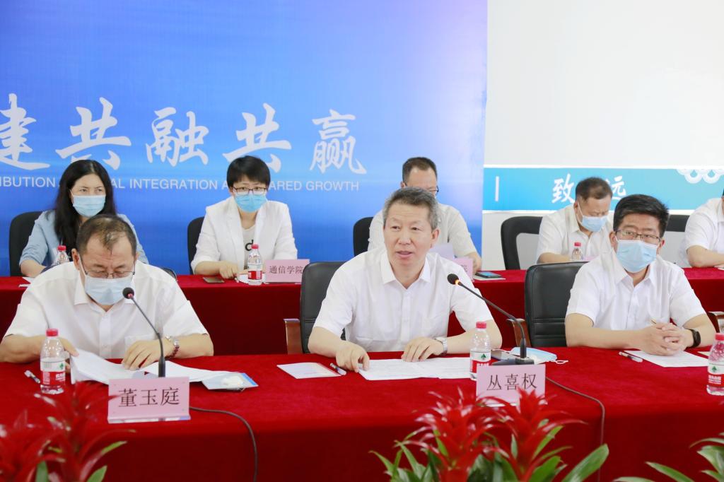 就进一步深化市校务实合作,王刚提出三点希望:一是希望市校能够突出未来合作重点,围绕重点领域加强对接合作,全面延伸合作深度;二是希望市校进一步放宽思路、扩大视野,将合作全面拓宽到智慧城市建设、生态康养旅游、城市文化、军民融合、乡村振兴等更多领域,全面拓宽合作广度;三是希望市校共同加强党组织共建,加强干部合作交流,加强引才留才工作,加强文化体育合作,共同创新思政教育联动机制,强化优势互补,全面拓展合作厚度。