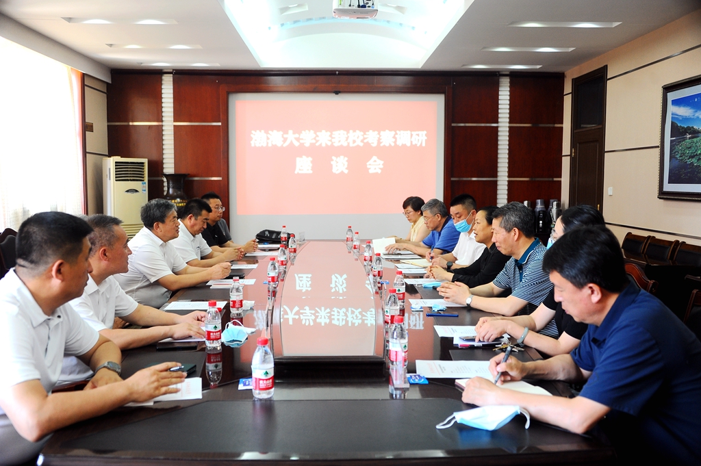 6月29日下午,渤海大学校长赵晖等一行7人来到sunbet申搏考察调研。sunbet申搏党委书记陈桂芝、副校长丛喜权以及学校办公室、教务处、科研处、国际交流合作处、文学与历史文化学院(新闻传播学院)等单位负责人在办公楼504会议室会见了赵晖一行。