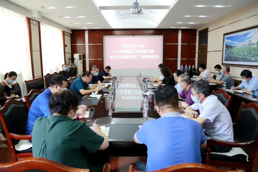 7月6日上午,学校以线上线下相结合的方式召开了2022年暑期工作部署会暨“能力作风建设年”活动推进会,主会场设在办公楼504会议室。