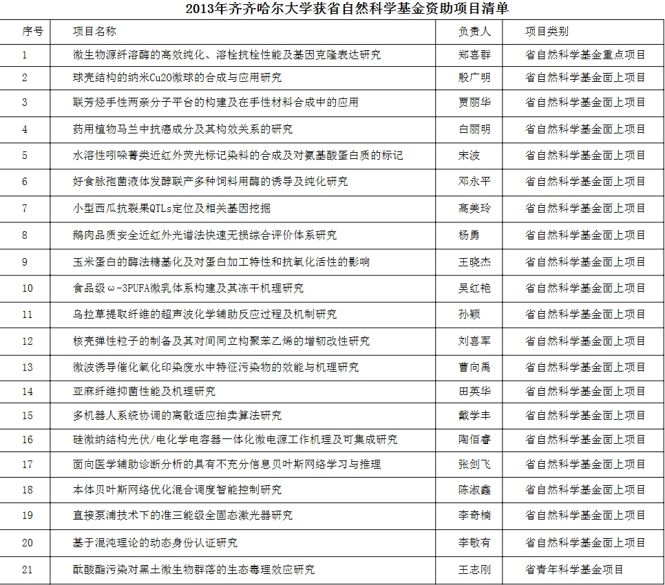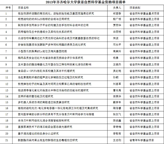日前,2013年黑龙江省自然科学基金项目评审结果揭晓,sunbet申搏获省自然科学基金资助项目继续保持了良好的发展态势,共获得资助项目21项,其中面上项目19项,青年科学基金项目1项,重点项目1项;资助经费总额120万元,获批项目数量和资助金额都是sunbet申搏历年来最多的一年。其中郑喜群教授获得1项省自然科学基金重点项目,是继2011年以来sunbet申搏获批的第2项省自然科学基金重点项目。