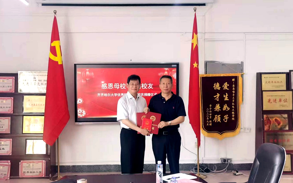 随后,曲波向母校捐赠了他工作时期获得的国家级荣誉奖励证书等珍贵的资料。他讲到,我们对党、对国家、对社会的认知来源于母校的教育,我们世界观的形成、智力的开发、学习和工作能力的提升都来源于母校的培养。我们今天成长为一名有用于国家、社会和家庭的人,必须感恩母校的教育和培养,我们获得的荣誉和成绩应该属于母校。我们这些校友们过去形成的思想品格、对国家和民族事业的情怀不会变,也希望学弟学妹们不单要努力学习成为学术上的专家,更要成长为对党、国家和民族有所贡献的爱国者和接班人。希望母校七十年校庆圆满成功,希望齐大的明天越来越美好,事业越来越辉煌!