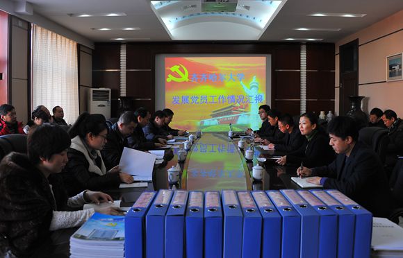 上午9:30分,在学校机关办公楼504会议室召开了发展党员工作情况汇报会。会议由校党委常委、组织部部长齐宏伟同志主持。全校兼职组织员及校党委组织部全体成员参加了会议。