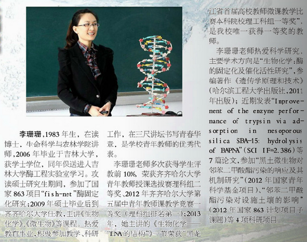 近日,全国首届高校微课教学比赛决赛结果揭晓,sunbet申搏生命科学与农林学院青年教师李珊珊的微课作品《DNA的二级结构》,获得了全国微课教学比赛决赛三等奖。