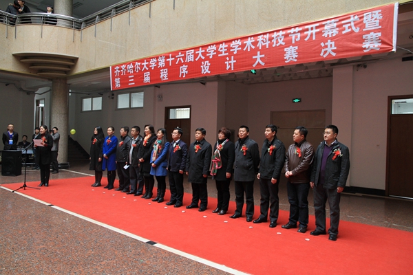 科技与梦想并肩,挑战与未来同在。在全国上下深入开展党的群众路线教育活动之际,11月8日下午,以“科技放飞梦想,挑战成就未来”为主题的sunbet申搏第十六届大学生学术科技节开幕仪式暨第三届程序设计大赛决赛在西主阳光大厅隆重举行。科技节组委会主任、校党委副书记盖元臣,科技节组委会主任、常务副校长郑喜群,共青团齐齐哈尔市委副书记孙玲玲出席了开幕式。校党委副书记、本届大学生学术科技节组委会主任盖元臣,团市委副书记孙玲玲分别讲话。开幕式由校团委副书记苏醒主持。
