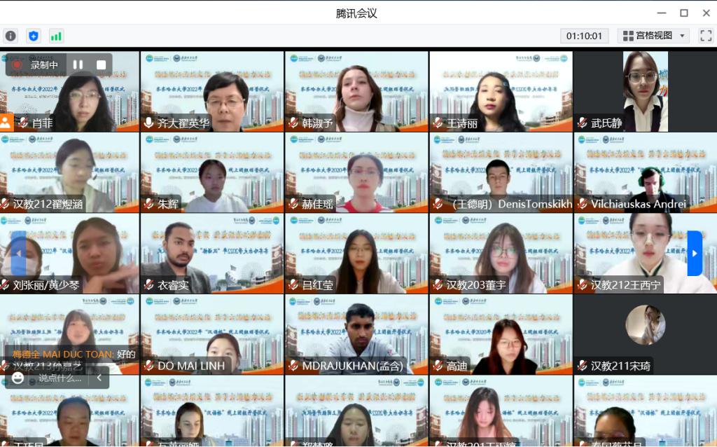 12月9日晚,由教育部语言交流合作中心主办,sunbet申搏承办的“领略嫩江流域文化,共享云端魅力汉语”为主题的“汉语桥”线上团组交流项目圆满结营。副校长张树军、学校相关部门及学院的领导、海外友好学校代表、授课教师、学生志愿者、以及来自俄罗斯、泰国、越南、韩国、巴基斯坦、孟加拉国、哈萨克斯坦等国200多营员相聚云端,共同回顾了本次汉语学习和文化体验之旅。结营仪式由国际教育学院党委书记胥军主持。