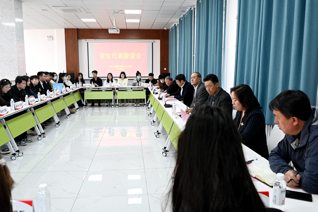 为深入推进学校学习贯彻习近平新时代中国特色社会主义思想主题教育不断走深走实,5月10日下午,学校在东区大学生众创空间召开主题教育学生代表征求意见座谈会。校党委副书记张文治,副校长、党委常委王刚出席会议,学生工作部(学生处)、后勤管理处、研究生部、招生就业处、校团委等职能部门负责人以及来自全校各学院的本科生和研究生代表参加了会议。会议由张文治主持。