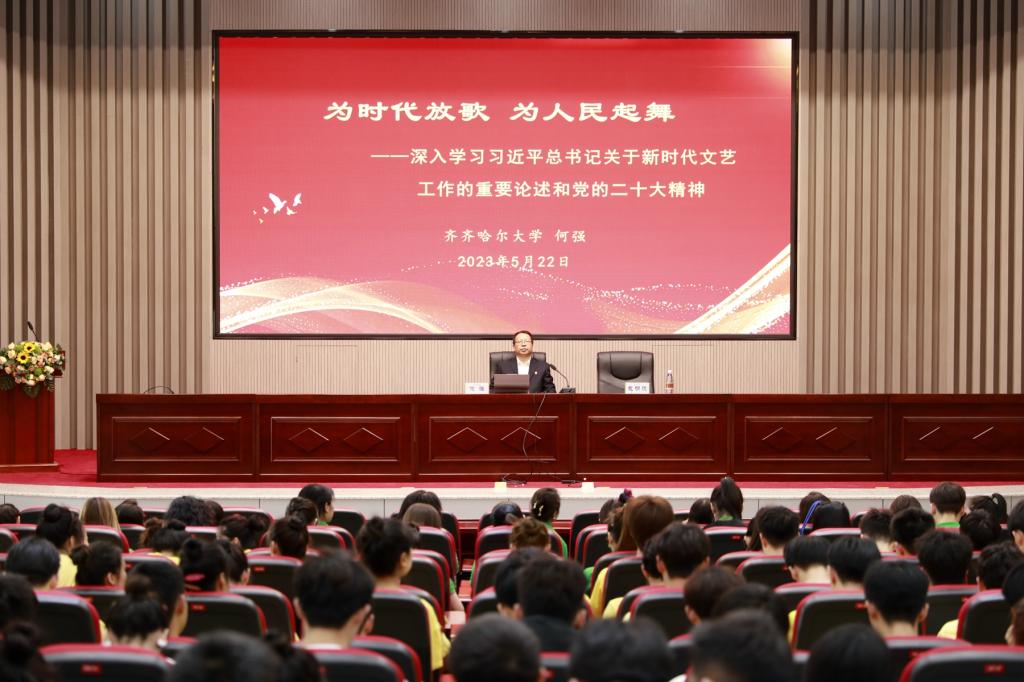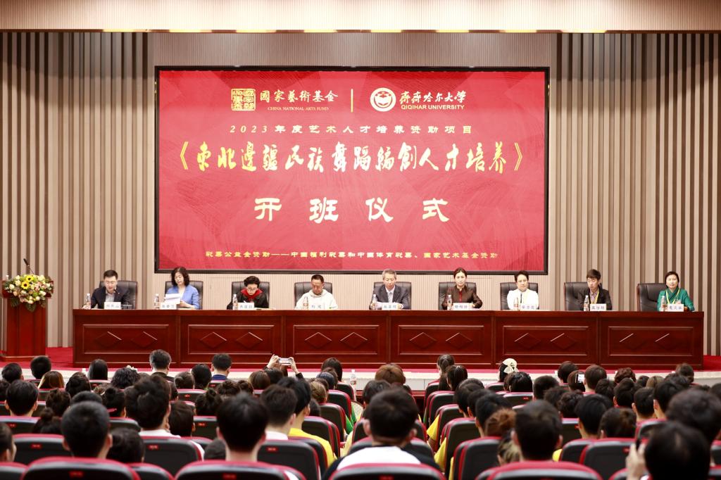 5月22日,由sunbet申搏官方网站主办的国家艺术基金2023年度人才培养资助项目《东北边疆民族舞蹈编创人才培养》开班仪式在日新大厦四楼报告厅隆重举行。来自黑龙江省文化和旅游厅艺术处、齐齐哈尔市文化广电和旅游局、北京舞蹈学院、中央民族大学舞蹈学院的多位领导、专家受邀参加仪式。开班仪式由科研处长郑禾山主持。