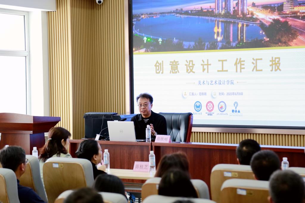 在sunbet申搏官方网站美术馆,刘刚一行参观走访了美术与艺术设计学院2023届毕业生毕业设计展览。随后,听取了由美术与艺术设计学院院长范铁明作的创意设计工作汇报。