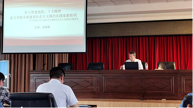 5月24日下午,校党委副书记齐宏伟以《学思想见行动为推进学校高质量发展凝聚奋进力量》为题,结合自身学习体会与调研情况,紧密联系分管工作实际,围绕“深刻认识开展主题教育的重大意义”“全面准确把握主题教育的目标要求”“守牢育人阵地,建设具有强大凝聚力和引领力社会主义意识形态”“深学细照笃行,为推进学校高质量发展凝聚奋进力量”四个方面进行深入阐述。强调要深刻领悟开展主题教育的重大意义,全面准确把握主题教育的目标要求,结合实际抓好落实,确保取得预期效果;要充分认识意识形态工作的重要性,学深悟透习近平总书记关于意识形态工作重要论述;要深学细照笃行,进一步解放思想、振兴发展,凝聚推进高质量发展的奋进力量。
