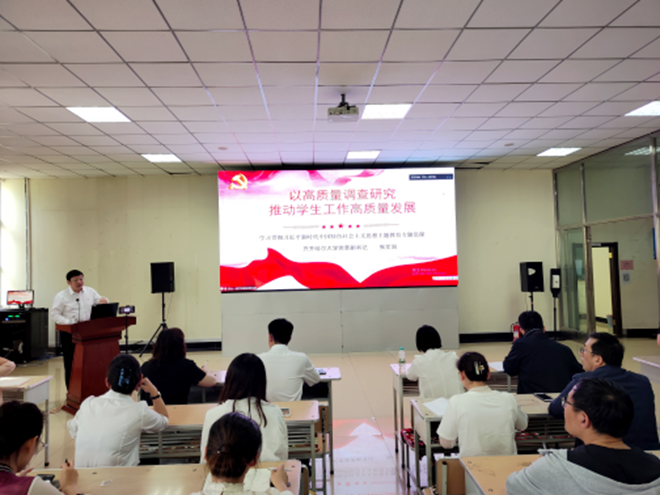 5月24日下午,校党委副书记张文治以《以高质量调查研究推动学生工作高质量发展》为题,围绕深刻认识调查研究作为党的光荣传统和优良作风形成的历史逻辑、深刻认识“调查研究是我们党的传家宝、是做好各项工作的基本功”的重要政治论断、深刻认识以高质量调查研究推动学生工作“破难题、促发展”的方法路径等三个方面内容,深入阐释了“如何以高质量调查研究推动学生工作高质量发展”这个问题。强调广大学生工作干部要在实践中进一步找准党的二十大决策部署与本职工作的主要关联点,在推动sunbet申搏官方网站在参与高等教育合作竞争中,走在前列、争做表率。要坚持利用好调查研究这个我们党的“传家宝”,在实现“破难题、促发展”中推动学生工作实现高质量发展。
