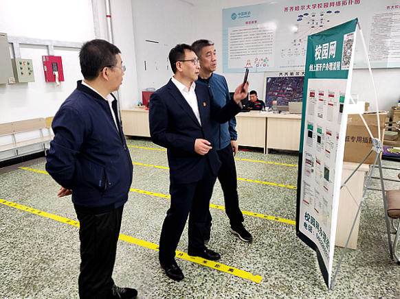 5月25日下午,校主题教育领导小组成员、校工会主席陶佰睿深入网络信息中心,详细听取了网络信息中心主任孙涌泉关于新老用户入网、用户缴费、网络故障报修、机房管理与维护等方面的介绍后,以学生用户身份扫码进行了线上入网办理,同时对网络故障报修、网络运维、办理入网程序和报修反馈机制提出了明确要求。陶佰睿强调,校园网是为学校师生提供教学、科研、管理和综合信息服务的重要载体,要不断建立完善的网络安全管理制度、运维体系和健全的校园网安全防护体系,不断增强安全意识,提升网络建设和管理水平,为建设有特色高水平应用型综合大学提供安全稳定的网络环境。