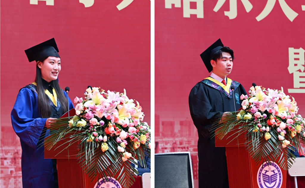 来自材料科学与工程学院的潘昊鑫同学、轻工与纺织学院的孙玉栋同学分别代表研究生毕业生、本科生毕业生发言