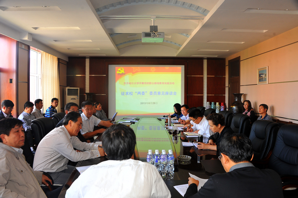 征求意见座谈会上,校“两委”(党委和纪委)委员分别发言,结合学校实际,从“四风”方面查摆问题,对学校改革、建设和发展中存在的问题和不足,提出了一系列意见和建议;针对师生关注的民生问题、加强干部队伍建设问题、强化机关部门的服务意识问题、加强学生理想信念教育和学风建设问题、精细化管理问题、师德师风建设问题等方面积极建言献策,希望学校以开展党的群众路线教育实践活动为契机,抢抓机遇,凝心聚力,切实解决事关学校改革、建设和发展大局的实际问题,狠抓落实,增强实效,加快有特色、高水平教学研究型综合大学建设步伐,推动学校科学发展。