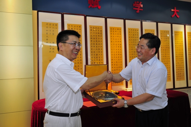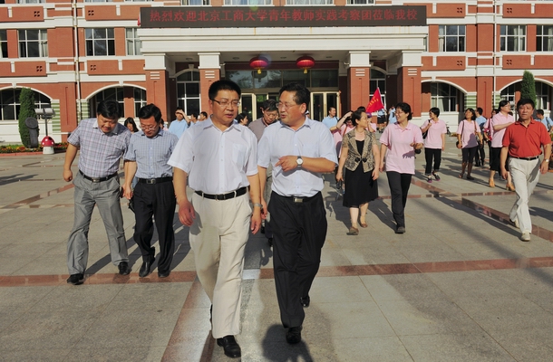 北京工商大学青年教师社会实践团一行在校领导和有关部门负责人的陪同下参观考察了校史馆、东中西区校园和环湖景观。北京工商大学党委副书记张德玉在校史馆留言簿上欣然写下了“向齐大学习,祝齐大越办越好”的祝福语。