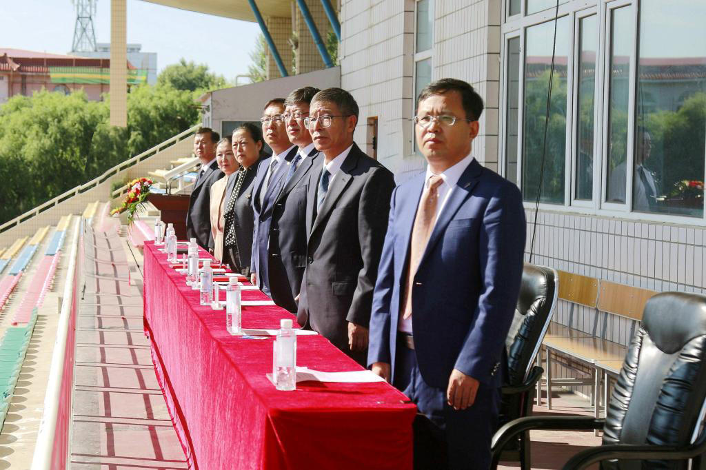 上午九时,五星红旗伴随雄壮的国歌声冉冉升起,开学典礼在庄严的升旗仪式中拉开帷幕。
