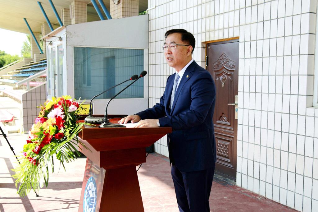 生命科学与农林学院院长、龙江青年学者王志刚教授作为教师代表发言。他回顾了在齐大多年砥砺科研的工作经历,分享了对校训、校风、齐大精神的思考和理解,勉励全体新生饮水思源、心怀感恩,谨记齐大校训、践行齐大精神、传承齐大校风,在新的征程筑梦齐大、逐梦齐大、圆梦齐大,努力成为引领新时代的奋斗者。
