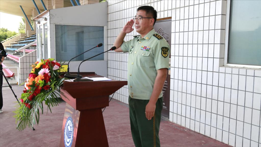 张文治作动员讲话。他代表学校向承担本次军训任务的武警齐齐哈尔支队全体官兵致以崇高的敬意和热烈欢迎,向担任军训任务的自训教官表示衷心的感谢,并向参加军训的2023级新同学表示亲切的慰问。他指出,党和国家十分重视学生军训工作,做好学生军训工作不仅是学校全面贯彻党的教育方针,推进素质教育、培养四有新人的客观要求,也是为国防和军队建设培养造就大批高素质后备兵员的重要举措,军训是每个大学生的开学第一课,意义重大、影响深远、作用突出。他就做好今年军训工作提出三点要求:一是提高思想认识,充分认清军训的目的意义;二是认真努力学习,深刻理解军训的目标任务;三是坚持刻苦训练,着力锤炼坚强意志品格。