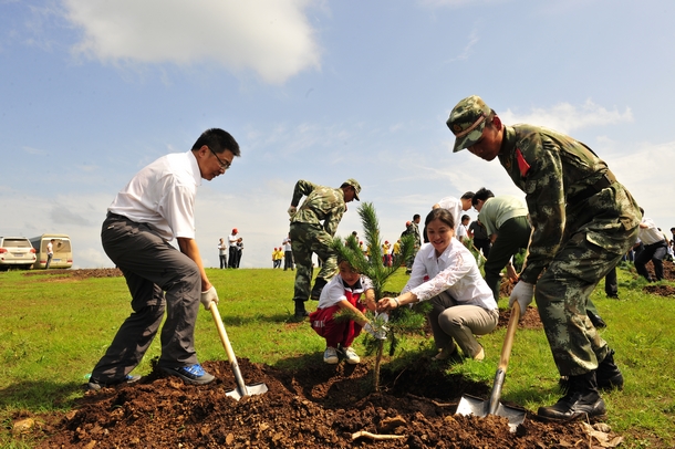8月2日上午,保护母亲河行动武警青年林黑龙江龙江项目植树活动在龙江县七棵树镇正式启动。