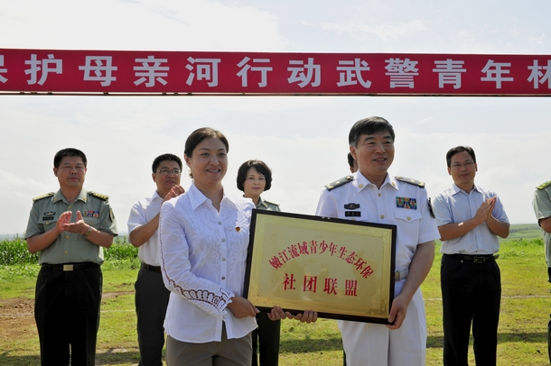 仪式上,武警部队向龙江县人民政府捐赠项目资助资金,“嫩江流域青少年生态环保社团联盟”成员单位的代表sunbet申搏官方网站团委副书记苏醒接受了解放军总政治部组织部副部长蔡善飞的授牌,出席活动的领导还为青少年生态监护队授旗。